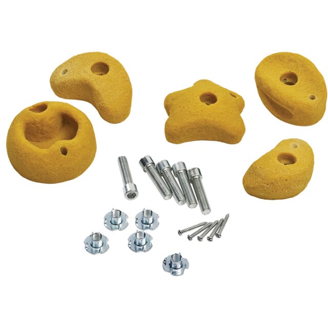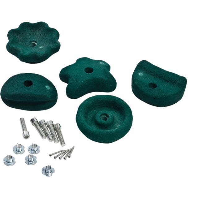 Sett med klatrestener i god kvalitet. Leveres med skruer . 5 forskjellige farger og 5 forskjellige former.